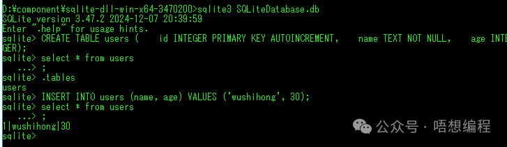 創(chuàng)建表 創(chuàng)建一個名為 users 的表,該表包含 id、name 和 age 三個字段