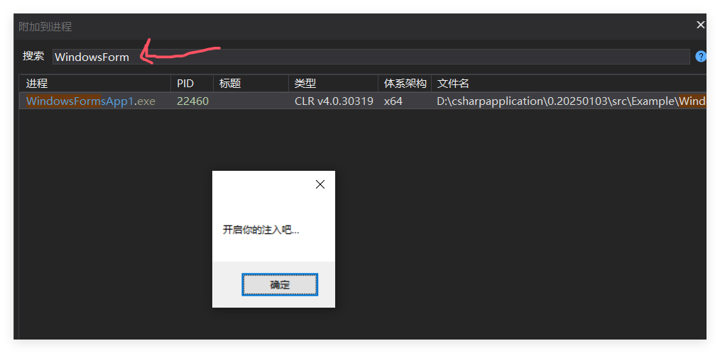 彈框之后,使用 dnspy 的進(jìn)程附加。