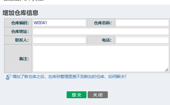 點(diǎn)晴永久免費(fèi)OA-低耗品管理-新增貨品倉庫信息
