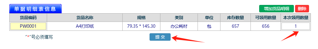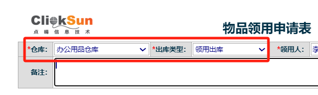 點(diǎn)晴永久免費(fèi)OA-低耗品管理-新增貨品領(lǐng)用單
