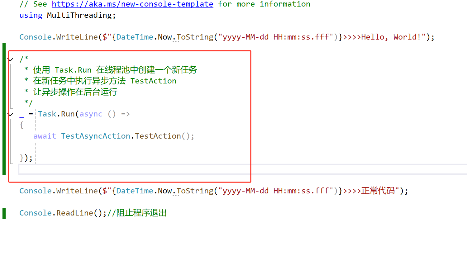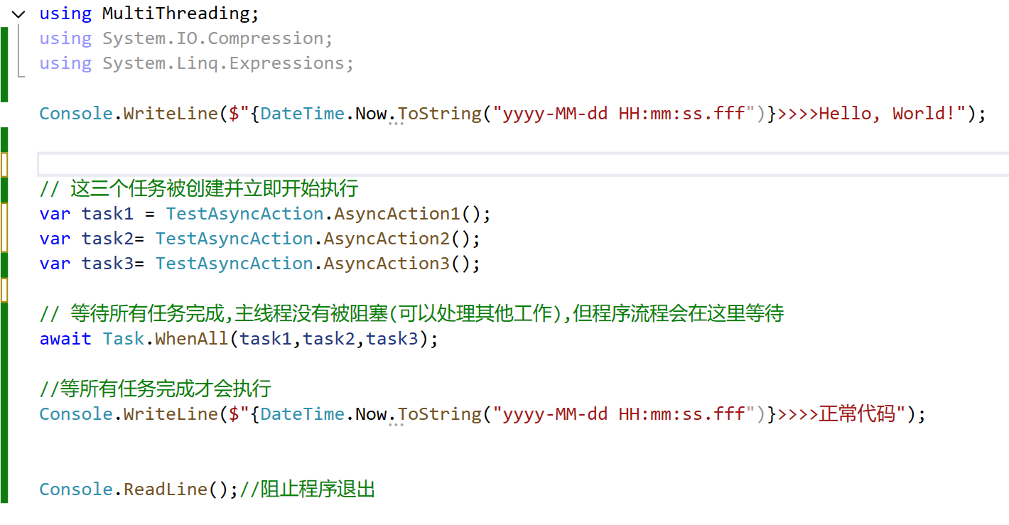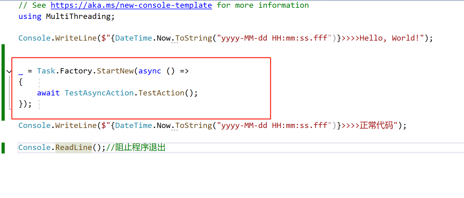 4、如果想等待新開線程執(zhí)行完再繼續(xù)執(zhí)行后續(xù)的代碼,可以使用如下方式:使用 await 等待整個操作完成 執(zhí)行結果: 5、也可以使用Task.Factory創(chuàng)建一個任務工廠來實現