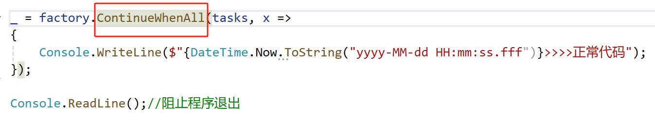 1、【異步結合多線程】如果有多個任務在執(zhí)行期間,在任意一個線程執(zhí)行完畢以后進行執(zhí)行某種操作,可以使用 ContinueWhenAny來進行 查看執(zhí)行結果: 2、【異步結合多線程】如果要等任務全部執(zhí)行完畢以后才執(zhí)行某個代碼塊,可以使用ContinueWhenAll