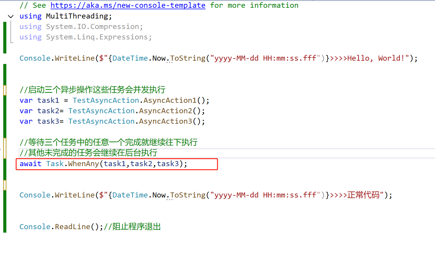 3、異步方法中 使用 WhenAll 和 WhenAny(這個僅模擬純IO操作,不涉及多線程)