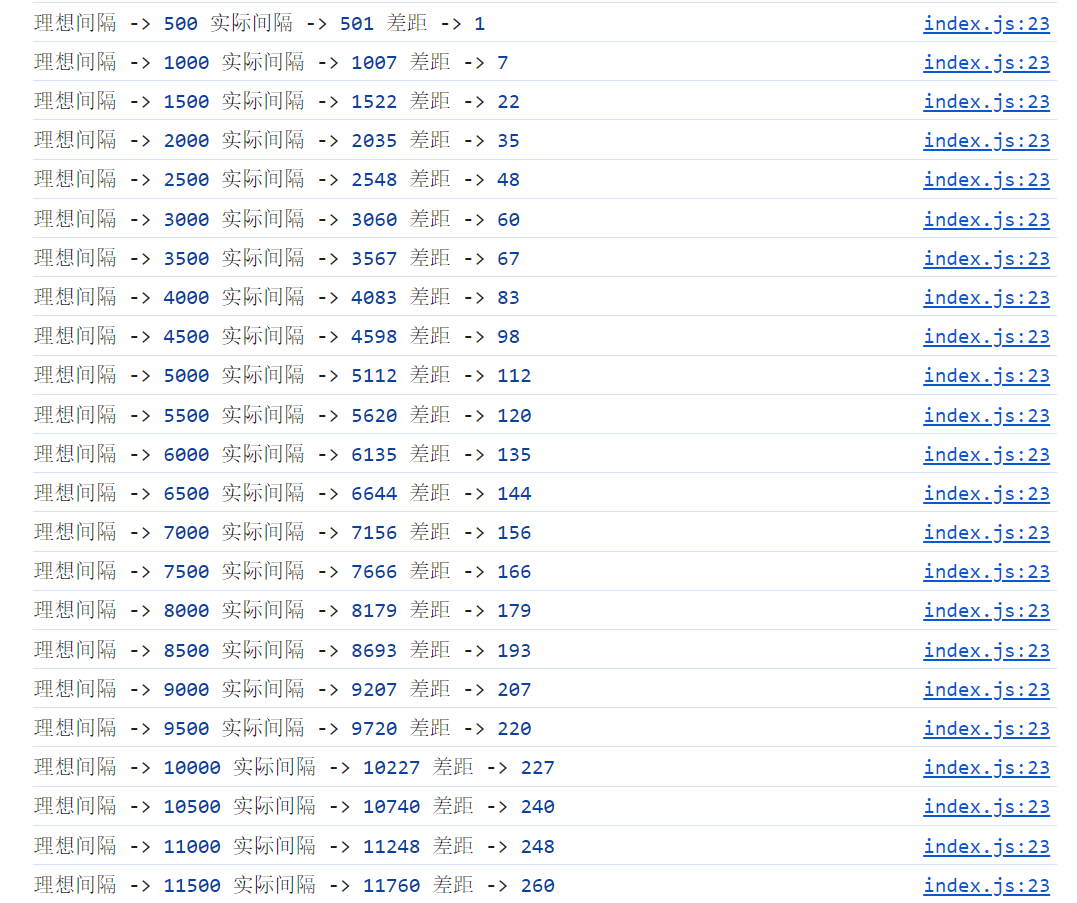 可以看到現(xiàn)在的實際間隔事件就比較準確了,當然這也不是百分百準確的,這只能最大保證定時器的準確性