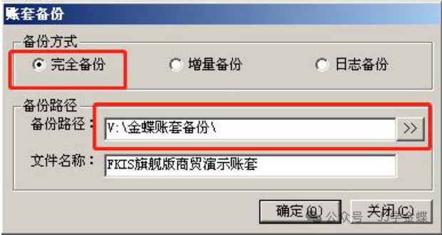 4)選擇完全備份和備份路徑,錄入備份文件名稱,確定。