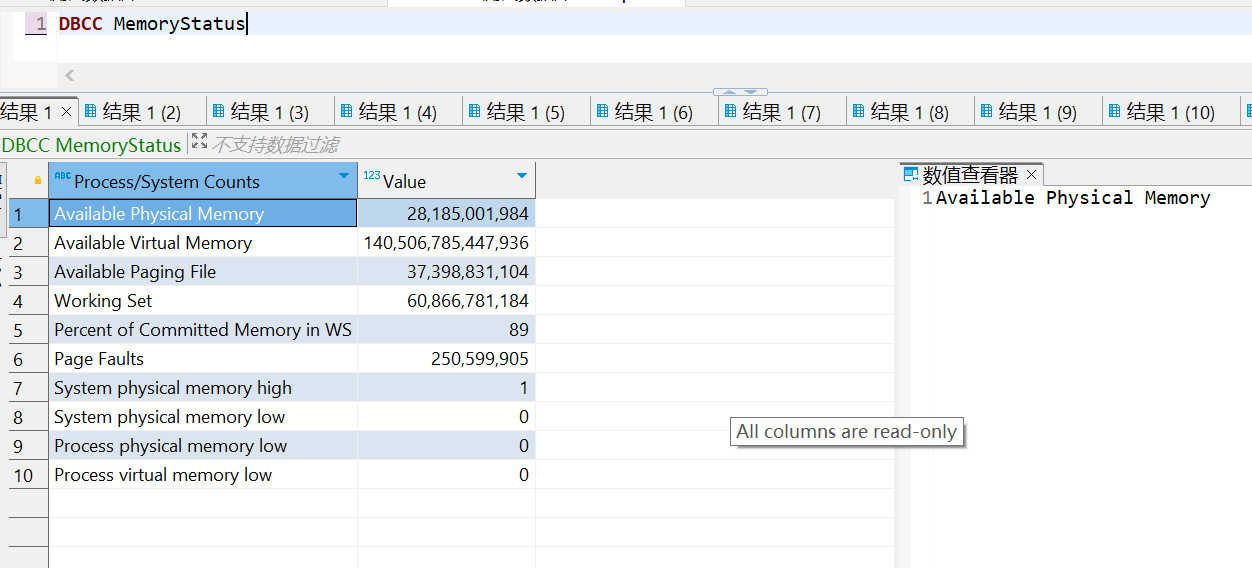 四、 其他結(jié)果集圖片:執(zhí)行 DBCC MemoryStatus