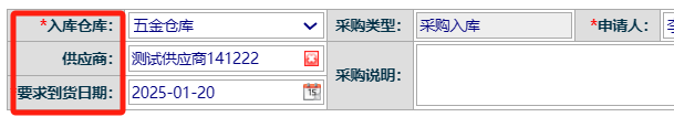 選好入庫倉庫,供應(yīng)商,到貨日期等 如下圖: ![]() 點(diǎn)擊增加貨品明細(xì) 如下圖: