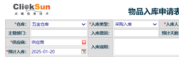 點晴永久免費OA-低耗品管理-貨品新增入庫單