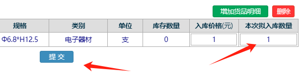 :點晴OA-低耗品管理-貨品新增入庫單![]() 點擊進(jìn)入 如下圖: 點擊新增入庫單 如下圖為: 選好倉庫,供應(yīng)商,日期等信息 如下圖: 點擊增加貨品明細(xì) 如下圖: