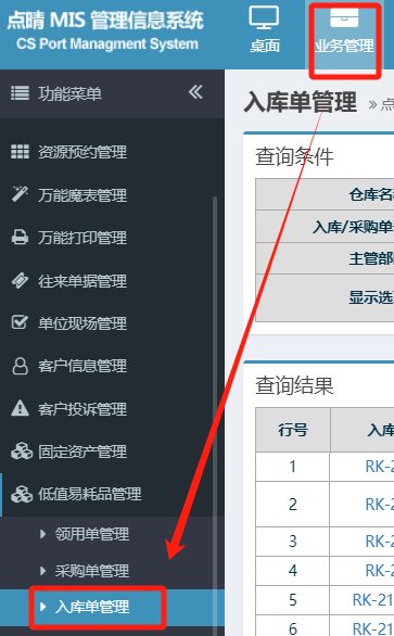 點(diǎn)晴永久免費(fèi)OA-低耗品管理-貨品采購(gòu)入庫(kù)單審核操作