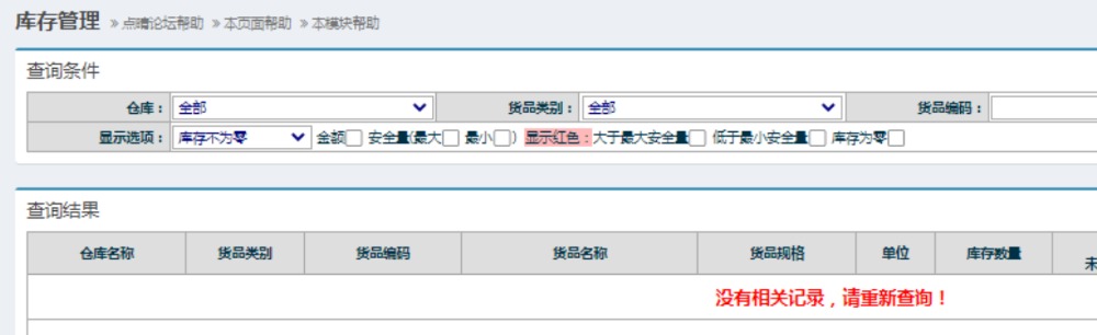 點晴永久免費OA-低耗品管理-庫存查詢不出來信息