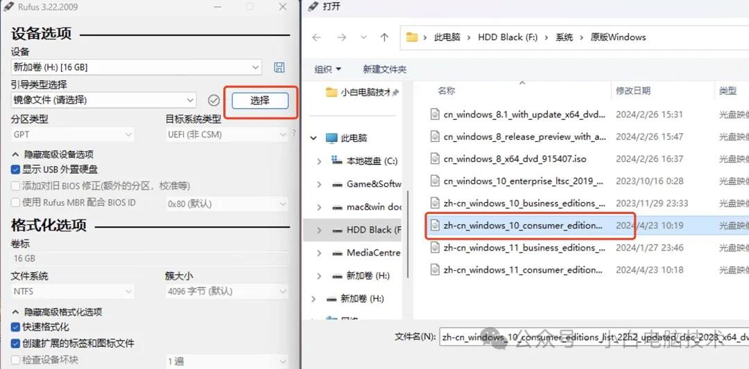 確認好設備無誤之后,就點擊【選擇】,找到剛剛下載好的Windows鏡像。