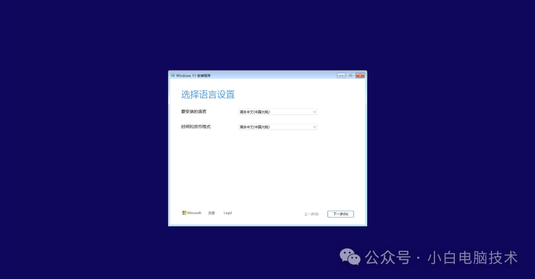 二、進入Windows系統(tǒng)重裝界面 1、點擊【下一步】-【下一步】