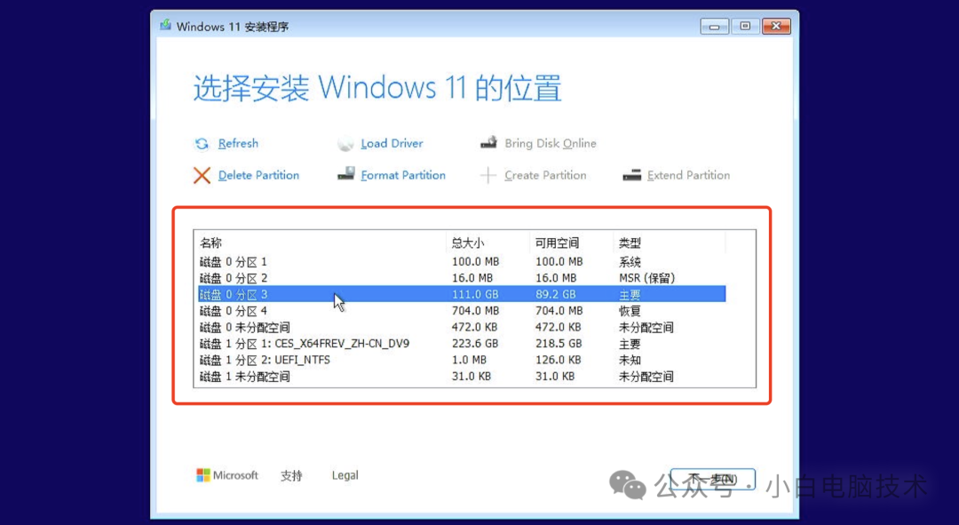 2、到這個地方的時候,一般會出現(xiàn)好幾個盤,注意認準磁盤再安裝。 小貼士:建議把電腦其他硬盤都拔掉,只留下裝系統(tǒng)的那個硬盤,不然很容易裝錯。