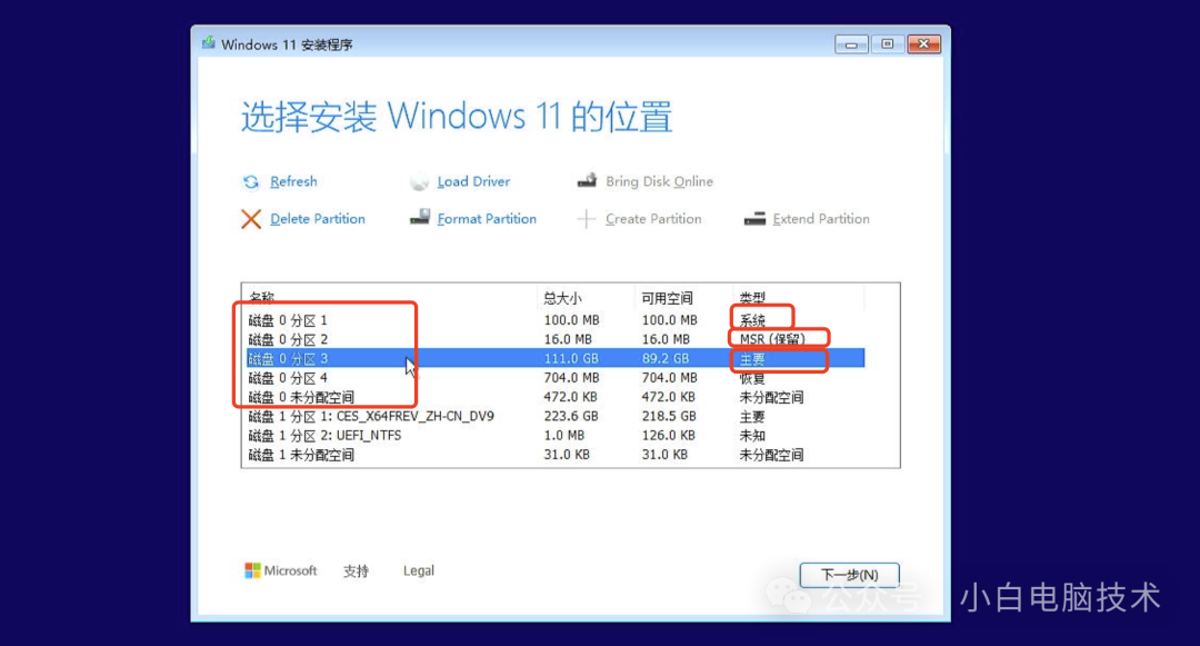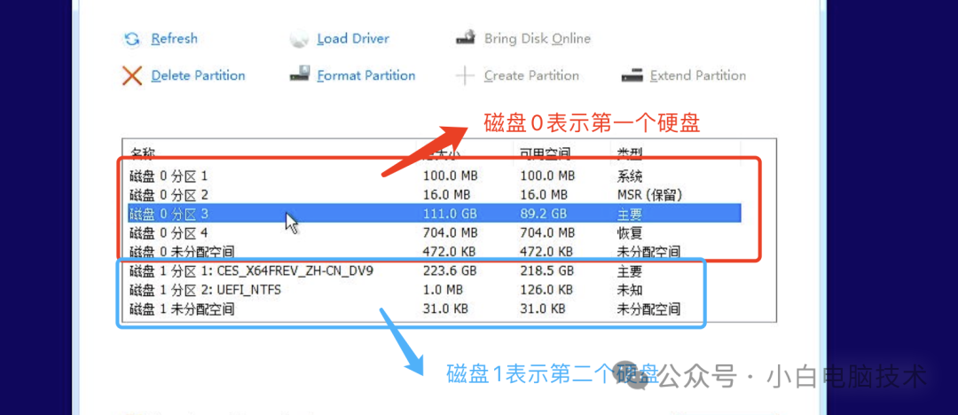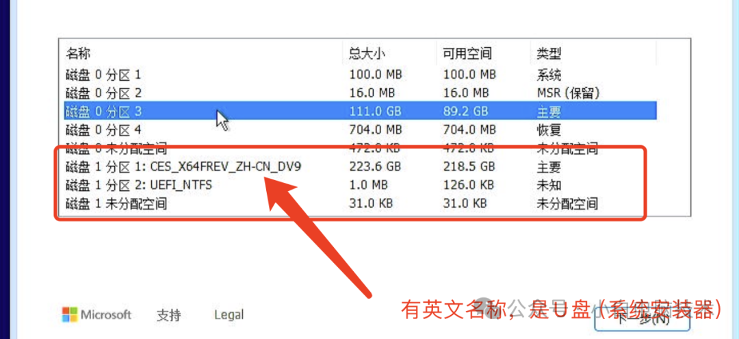 1)首先分辨哪個是要安裝的硬盤,哪個是U盤。一般來說,帶有主要字樣的磁盤,且對應磁盤有標注:“MSR分區(qū)”、“系統(tǒng)”這兩種的是系統(tǒng)盤