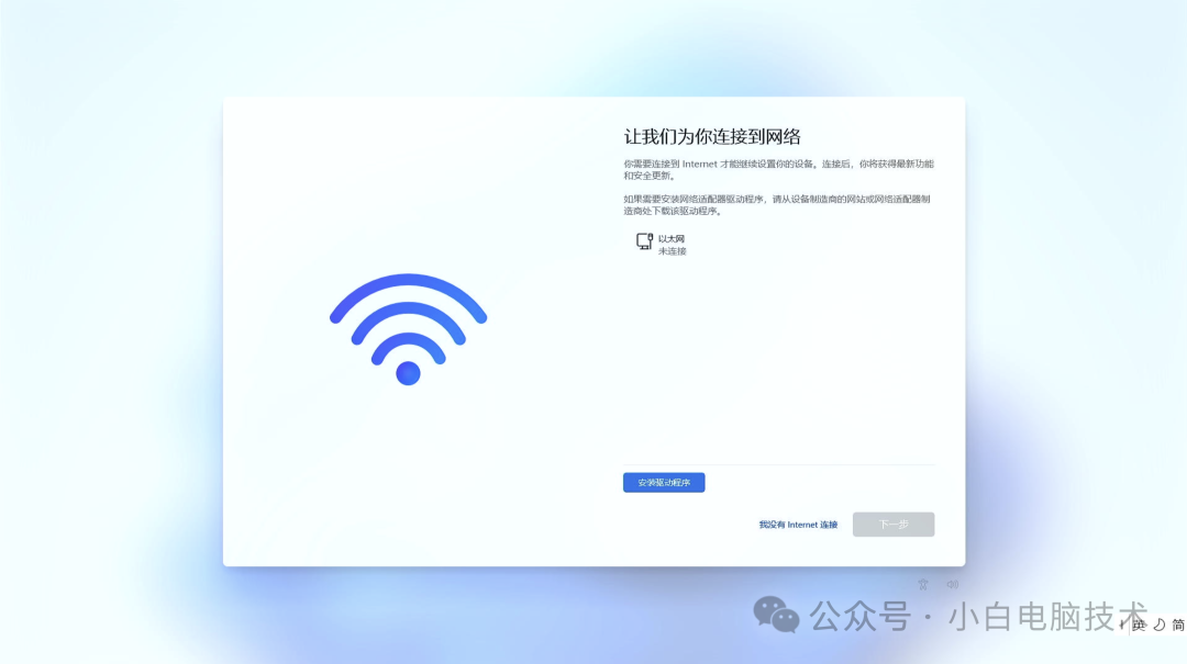 7、不斷網(wǎng)的話,到這里就會強制你登陸Microsoft帳戶(賊麻煩),這里點擊【我沒有Internat連接】