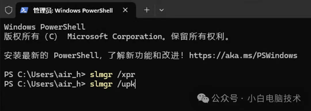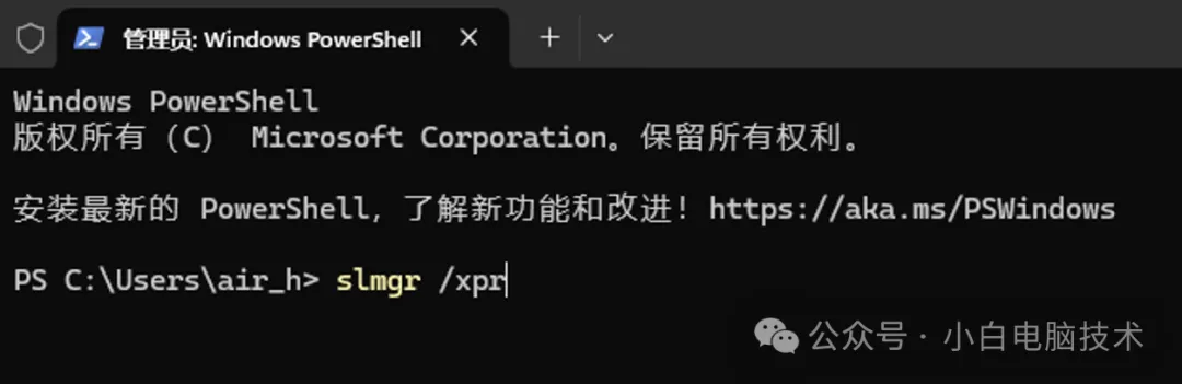 再次查詢激活狀態(tài) 在【W(wǎng)indows PowerShell】或【終端管理員】處輸入【slmgr /xpr】