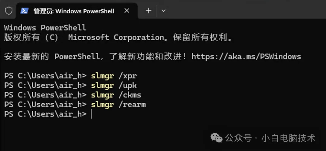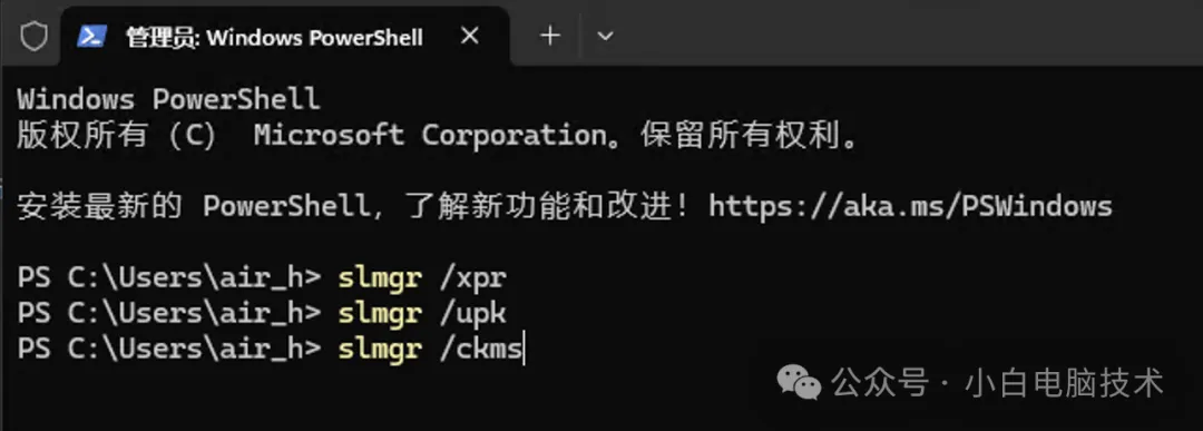 前段時(shí)間有些小伙伴反饋:她的Windows無(wú)法用數(shù)字權(quán)利進(jìn)行激活。 這個(gè)問(wèn)題其實(shí)很常見,而且大部分人在激活的時(shí)候都會(huì)遇到。 小白在很早之前也分享過(guò)類似的文章,只不過(guò)好像失效了。 注:本文僅適用于Windows10或以上版本。 對(duì)于這個(gè)問(wèn)題,其實(shí)很簡(jiǎn)單:你的Windows曾經(jīng)用了KMS激活的辦法,或者是家里部署了KMS激活服務(wù)器,導(dǎo)致鏈接上網(wǎng)絡(luò)之后就自動(dòng)KMS激活了。 對(duì)于那些曾經(jīng)使用KMS激活過(guò)的Windows,就算你重裝了系統(tǒng),它也不太可能使用數(shù)字權(quán)利激活。如果一定要使用數(shù)字激活,那也是有辦法的。 就是需要把電腦里存在的KMS信息清除,然后再重新激活即可。 今天小白就來(lái)嘮嘮,怎么清除電腦里的KMS激活信息再激活。 正文開始 電腦無(wú)法正常數(shù)字激活的小伙伴,請(qǐng)按照教程一步步調(diào)整。如果是確認(rèn)新電腦的情況下,可以直接跳轉(zhuǎn)最后一個(gè)小節(jié):數(shù)字激活教程 注意:這里所使用的Windows PowerShell(管理員)均指以下這個(gè)界面: