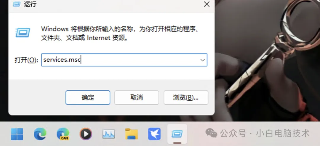 開機(jī)之后,進(jìn)入按【W(wǎng)in】+【R】,輸入【services.msc】,回車