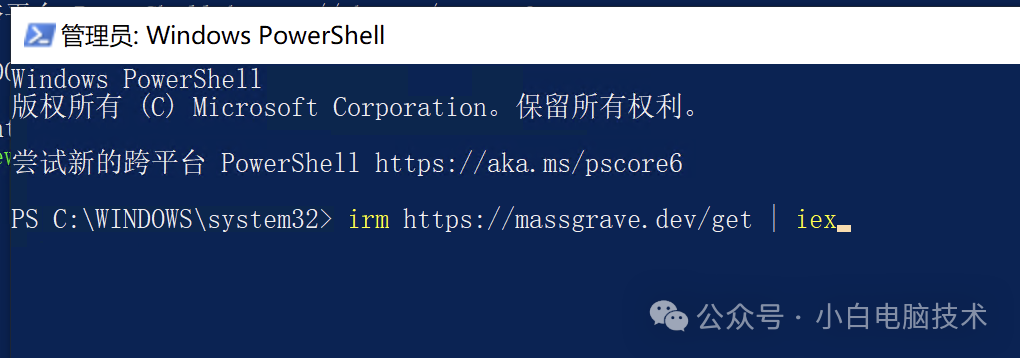 輸入【irm https://massgrave.dev/get | iex】,回車