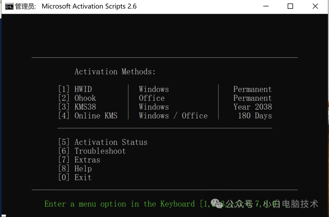 輸入【1】,就會(huì)自動(dòng)進(jìn)入*活。