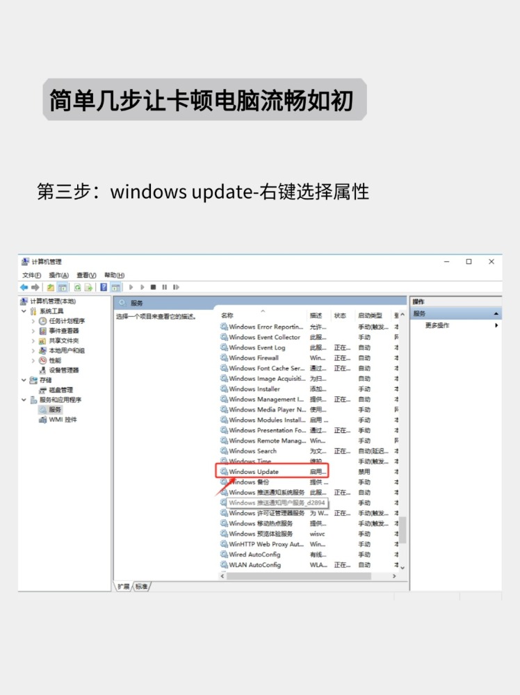 免費(fèi)解決電腦卡頓只需五步從此不花冤枉錢只需五步解決電腦卡頓,絕對(duì)免費(fèi),不求人不花冤枉錢,第一步:我的電腦﹣右鍵管理,服務(wù)和應(yīng)用程序﹣單擊服務(wù)