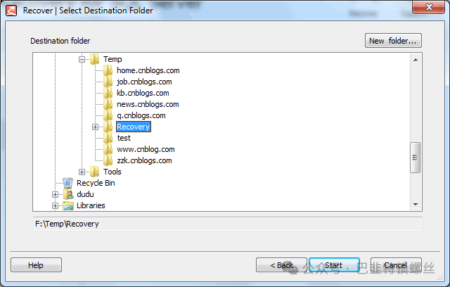 5. Next 并選擇目標文件夾(Destination folder),用于存放恢復(fù)過程中生成的SQL語句與bat文件。