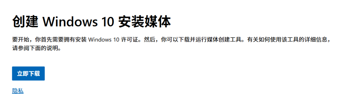Win10和Win11系統(tǒng)均支持安裝媒體下載。這里以Win10系統(tǒng)為例,Win11系統(tǒng)同理。具體步驟如下: