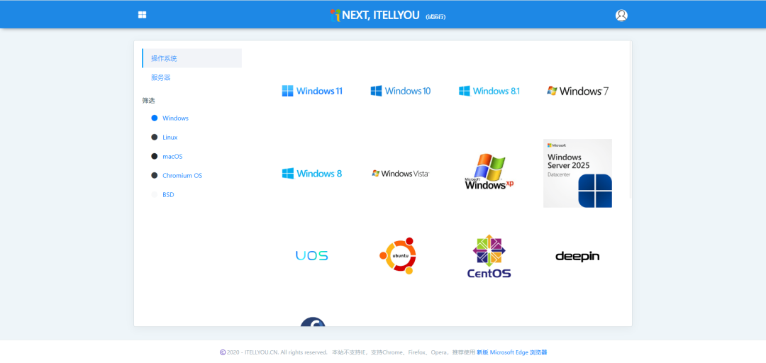 ITellYou官網(wǎng)的主頁(yè)面設(shè)計(jì)直觀且易于導(dǎo)航。包括Windows、Linux、MacOS系統(tǒng)鏡像。而在舊版中包含Windows ISO、Office ISO、開發(fā)工具等。此外,首頁(yè)中央通常會(huì)有一個(gè)輪播圖區(qū)域,展示了一些最熱門或最新的ISO鏡像下載鏈接,方便用戶直接訪問。資源列表部分則詳細(xì)列出了所有可用的ISO鏡像,每項(xiàng)記錄都包含了名稱、大小、更新日期以及下載鏈接等關(guān)鍵信息。頁(yè)腳提供了額外的幫助和支持信息,如常見問題解答和聯(lián)系方式。