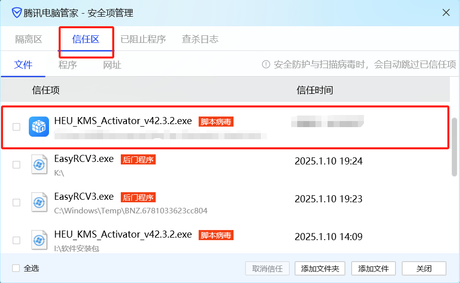 3、該軟件下載及使用中會(huì)出現(xiàn)強(qiáng)制刪除的情況(認(rèn)為該軟件為病毒軟件),請(qǐng)大家在下載和使用時(shí)關(guān)閉/退出安全防護(hù)軟件,或者添加到安全防護(hù)軟件信任區(qū)。