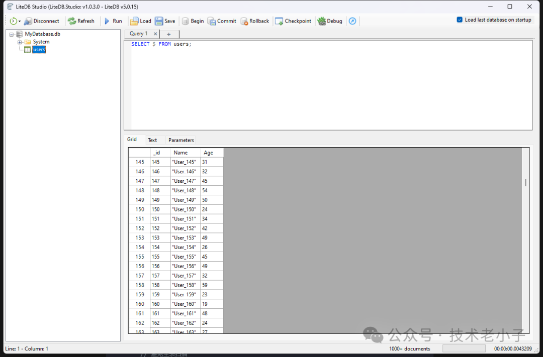 publicclassCollectionManagement { publicvoidBasicCollectionOperations() { // 創(chuàng)建或打開數(shù)據(jù)庫 using (var db = new LiteDatabase(@"MyDatabase.db")) { // 獲取或創(chuàng)建集合(類似于表) var users = db.GetCollection<User>("users");