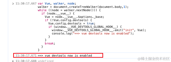 console.log("==> vue devtools now is enabled");