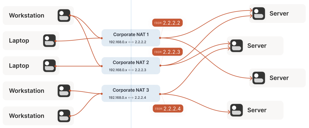 但 對于 NAT 和防火墻穿透來說,我們會關(guān)心每個具體的 IP 地址和端口 。