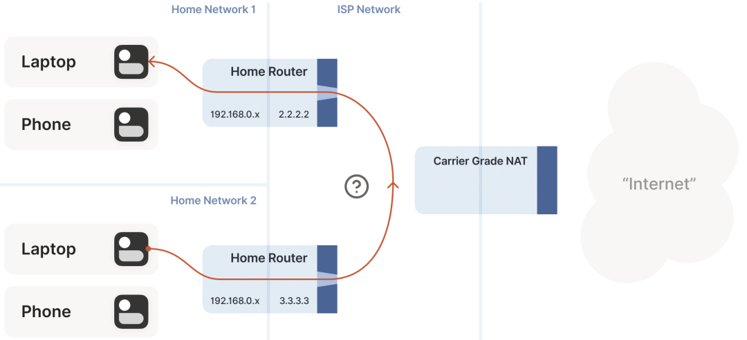 但有了 CGNAT 之后就不管用了,因為你無法控制運(yùn)營商的 CGNAT!
