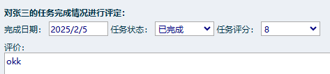 ![]() 點(diǎn)擊績(jī)效評(píng)分,點(diǎn)擊成員姓名,修改狀態(tài)并評(píng)分,對(duì)全部成員完成此步驟后,總體進(jìn)度就會(huì)變?yōu)?span style="color: rgb(0, 176, 80);">已完成。 也可以使用異常結(jié)案跳過評(píng)分步驟變?yōu)橐淹瓿伞?/p> 該文章在 2025/2/5 15:56:33 編輯過 |