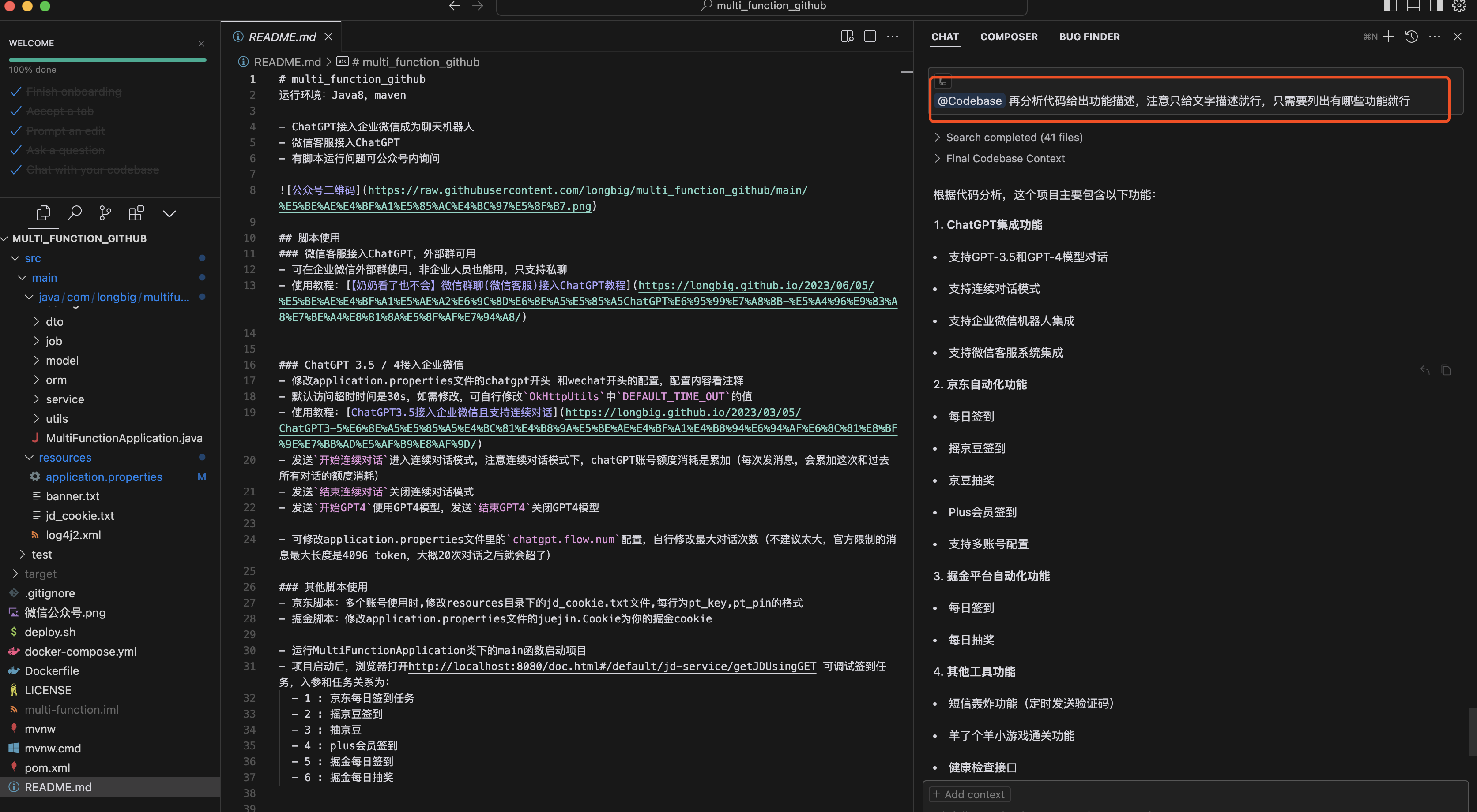 3.5 項(xiàng)目理解Cursor具備理解整個(gè)項(xiàng)目代碼的強(qiáng)大能力,注意是整個(gè)項(xiàng)目,不是單個(gè)代碼文件! 這里在 以小卷的Github上的開源項(xiàng)目為例:
