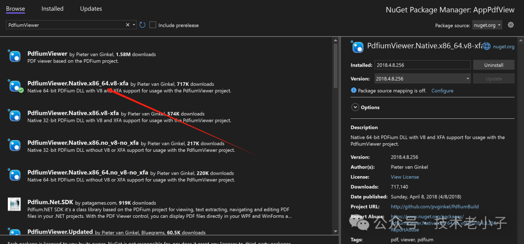 Install-Package PdfiumViewer.Core或者在 Visual Studio 的NuGet包管理器中搜索PdfiumViewer并安裝。
