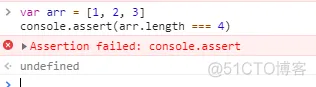 這里要注意的是這是亂序的 - 最右邊的列標(biāo)題上的箭頭顯示了原因。我點(diǎn)擊該列進(jìn)行排序。找到列的最大或最小,或者只是對(duì)數(shù)據(jù)進(jìn)行不同的查看非常方便。順便說(shuō)一句,該功能與僅顯示一些列無(wú)關(guān),它總是可用的。 console.table() 只能處理最多1000行,因此它可能不適合所有數(shù)據(jù)集。 console.assert()assert() 與 log() 是相同的函數(shù),assert()是對(duì)輸入的表達(dá)式進(jìn)行斷言,只有表達(dá)式為false時(shí),才輸出相應(yīng)的信息到控制臺(tái),示例如下: