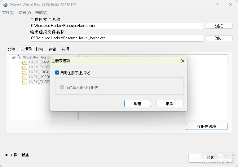 4. 可選,點擊注冊表,然后點擊“注冊表選項”,點擊“啟用注冊表虛擬化”,這樣你就能編輯這個軟件的注冊表了,專業(yè)人士用的,因為很多安裝軟件都會注入對應(yīng)的注冊表,你這樣編輯之后就不容易出錯