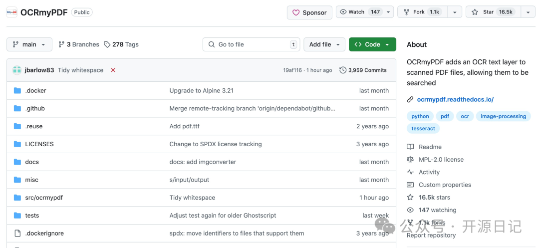 開源地址: https://github.com/ocrmypdf/OCRmyPDF/
