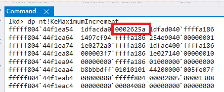 使用windbg進(jìn)入內(nèi)核態(tài),使用nt!KeMaximumIncrement命令查看看它的值