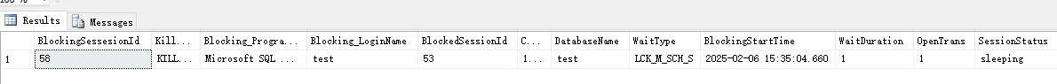 那么我們簡單構(gòu)造一下統(tǒng)計(jì)信息更新被阻塞的案例,如下所示 --會(huì)話58中執(zhí)行下面語句,模擬事務(wù)正在修改表結(jié)構(gòu)(DDL),此時(shí)事務(wù)未提交/事務(wù)正在執(zhí)行階段 --會(huì)話53中執(zhí)行下面語句更新統(tǒng)計(jì)信息 在會(huì)話窗口監(jiān)控阻塞情況,如下所示,對表進(jìn)行DDL操作時(shí),會(huì)阻塞統(tǒng)計(jì)信息的更新,此時(shí)更新統(tǒng)計(jì)信息的會(huì)話的等待類型為LCK_M_SCH_S,意味著會(huì)話53正在等待獲取架構(gòu)穩(wěn)定鎖(Sch-S), 其實(shí)反過來,更新統(tǒng)計(jì)信息也會(huì)阻塞一些會(huì)話對相關(guān)表進(jìn)行DDL操作。此時(shí)對相關(guān)表進(jìn)行DDL操作時(shí)。個(gè)人也構(gòu)造了另外一個(gè)大表測試案例進(jìn)行了驗(yàn)證。有興趣也可以驗(yàn)證一下。此處略過。