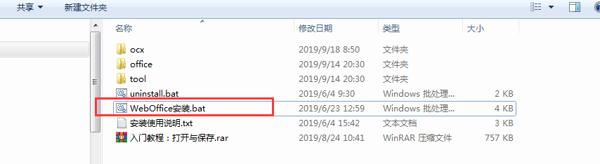 1、下載WebOffice控件安裝 下載WebOffice控件路徑:http://www.officectrl.com/weboffice/weboffice.rar 下載后解壓打開,雙擊運(yùn)行【W(wǎng)ebOffice安裝.bat】,具體安裝可查看【安裝使用說明】。