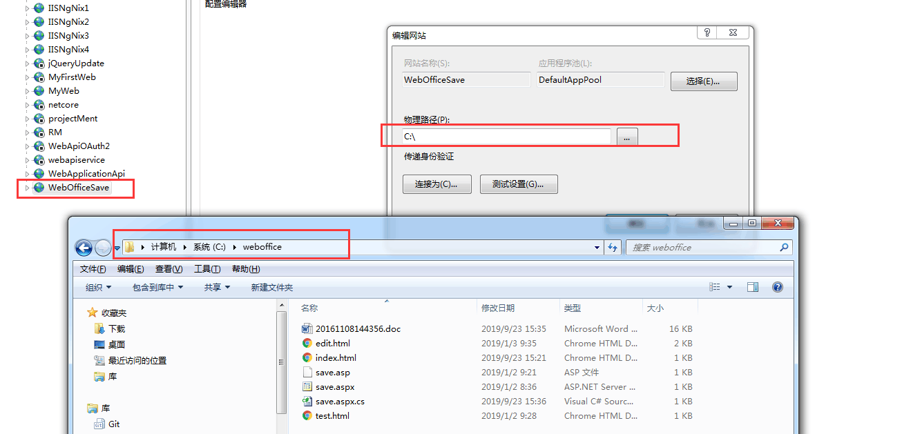 我們還需要修改一下保存的路徑,因?yàn)閭髦档膯栴}和自動設(shè)置服務(wù)器保存路徑的問題,需要打開save.aspx.cs,將tmpRootDir = tmpRootDir+ "\\20161108144356.doc";修改為tmpRootDir = tmpRootDir+ "\\weboffice\\20161108144356.doc"; 然后保存,運(yùn)行iis項(xiàng)目,如下圖: