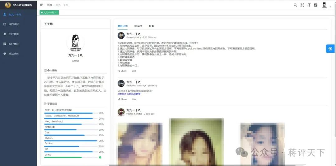 再聊聊它的安裝過程,只能用 “簡單到離譜” 來形容,說是 “有手就行” 一點都不夸張。官方提供的文檔步驟詳細得就像一位耐心的老師在手把手教你,每一個步驟都有清晰的說明和配圖。從下載軟件開始,到一步步完成安裝,整個過程只需要短短幾分鐘就能搞定。安裝完成后,也不需要你去操心那些復雜的環(huán)境配置,更不用擔心安裝各種依賴軟件時出現(xiàn)的各種兼容性問題。你只需要按照提示,填好內(nèi)網(wǎng)地址和端口這些基礎信息,然后輕輕點擊一下按鈕,就能馬上開啟你的內(nèi)網(wǎng)穿透之旅,真的是方便快捷到了極致。 系統(tǒng)截圖 ![]() ![]() ![]() ![]() ![]() 在實際長時間的使用過程中,eznat的穩(wěn)定性也給了我一個大大的驚喜。以前用其他軟件的時候,最讓人崩潰的就是時不時就會掉線,尤其是在關(guān)鍵時刻,比如正在進行重要的文件傳輸,或者和客戶進行遠程會議展示項目成果的時候,突然掉線,那場面簡直尷尬到腳趾摳地。但是 eznat_server 就完全沒有這些問題,不管是在白天工作高峰期,我同時進行多個任務,對網(wǎng)絡穩(wěn)定性要求極高的時候;還是在晚上我掛機下載大文件,讓它長時間運行的時候,它都能始終保持穩(wěn)定,就像一個忠誠可靠的伙伴,穩(wěn)穩(wěn)地運行著,給我滿滿的安全感。 毫不夸張地說,eznat 絕對擔得起 “史上最簡單的內(nèi)網(wǎng)穿透軟件” 這個響亮的名號。如果你現(xiàn)在還在內(nèi)網(wǎng)穿透的大坑里苦苦掙扎,被各種難題搞得焦頭爛額,不妨試試這款軟件,說不定它真的能為你打開一扇通往新世界的大門,讓你的內(nèi)網(wǎng)穿透體驗從此煥然一新! 項目地址: https://gitee.com/guoliang1994/eznat_server ?直接下載: 增加windows,php運行環(huán)境及啟動代碼。