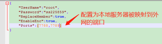 2. 打開配置文件,修改監(jiān)聽端口,Ports需要配置為可以被外網(wǎng)訪問的端口,如果僅需要監(jiān)聽一個(gè)端口時(shí),把Port2配置為0,在這里我們配置為7788。