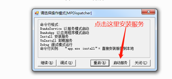 3. 啟動(dòng)MPDispatcher.exe,并在彈出的界面中點(diǎn)擊安裝服務(wù)。