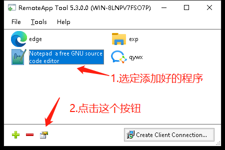 3. 選擇一個(gè)需要被遠(yuǎn)端運(yùn)行的程序,這里以Notepad++為例: