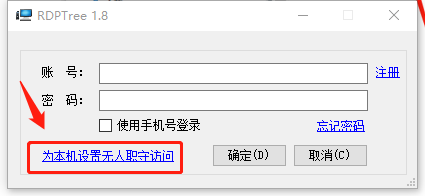 2.2 被控端安裝(Windows)1. 運(yùn)行RDPTree后,點(diǎn)擊為本機(jī)設(shè)置無人值守訪問鏈接。