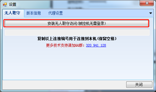 2. 在彈出的對話框中點(diǎn)擊安裝無人值守訪問(被控機(jī)無需登錄)
